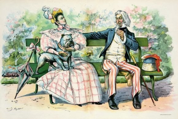 Restored vintage and royalty-free illustration of of a painting called “Love me, love my dog” by Charles Jay Tayl